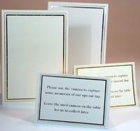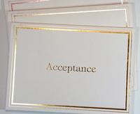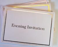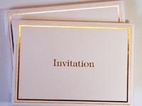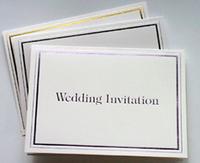 S p e c i a l O c c a s i o n s - Back to Wedding Albums Simple yet classic stationery for you to send to your guests, family and friends, from Invitations to announcements. White invitations with a choice of foil coloured borders. Pre-printed inside for you to fill out and send. Also in this selection, embossed stationery cards. Complementary white envelopes complete the look. Browse through for stationery, cake boxes, ribbons and more.