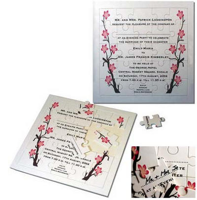 Surprise your guests with 25 piece fully interlocking jigsaw puzzle Invitations and Evening Invitations. If you like this design remember to bookmark this page. To request a sample invitation please click here. Price Calculator - Back to topYou can use the price calculator to calculate the price of items in this range. Please enter quantities in multiples of ten, starting from a minimum order of twenty for each item. Once you are happy click on 'Add to Basket'. Prices