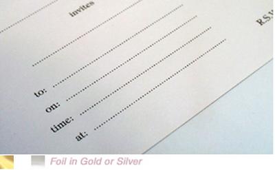 Ideal for a party or a special occasion. Simple yet classic stationery for you to send to your guests, family and friends. White invitations with a choice of Silver or Gold foil coloured borders. Pre-printed inside for you to fill out and send. Complementary white envelopes complete the look. If you like this design remember to bookmark this page. Price Calculator - Back to topYou can use the price calculator to calculate the price of items in this range. Please enter quantities in multiples of ten, starting from a minimum order of twenty for each item. Once you are happy click on 'Add to Basket'. Prices